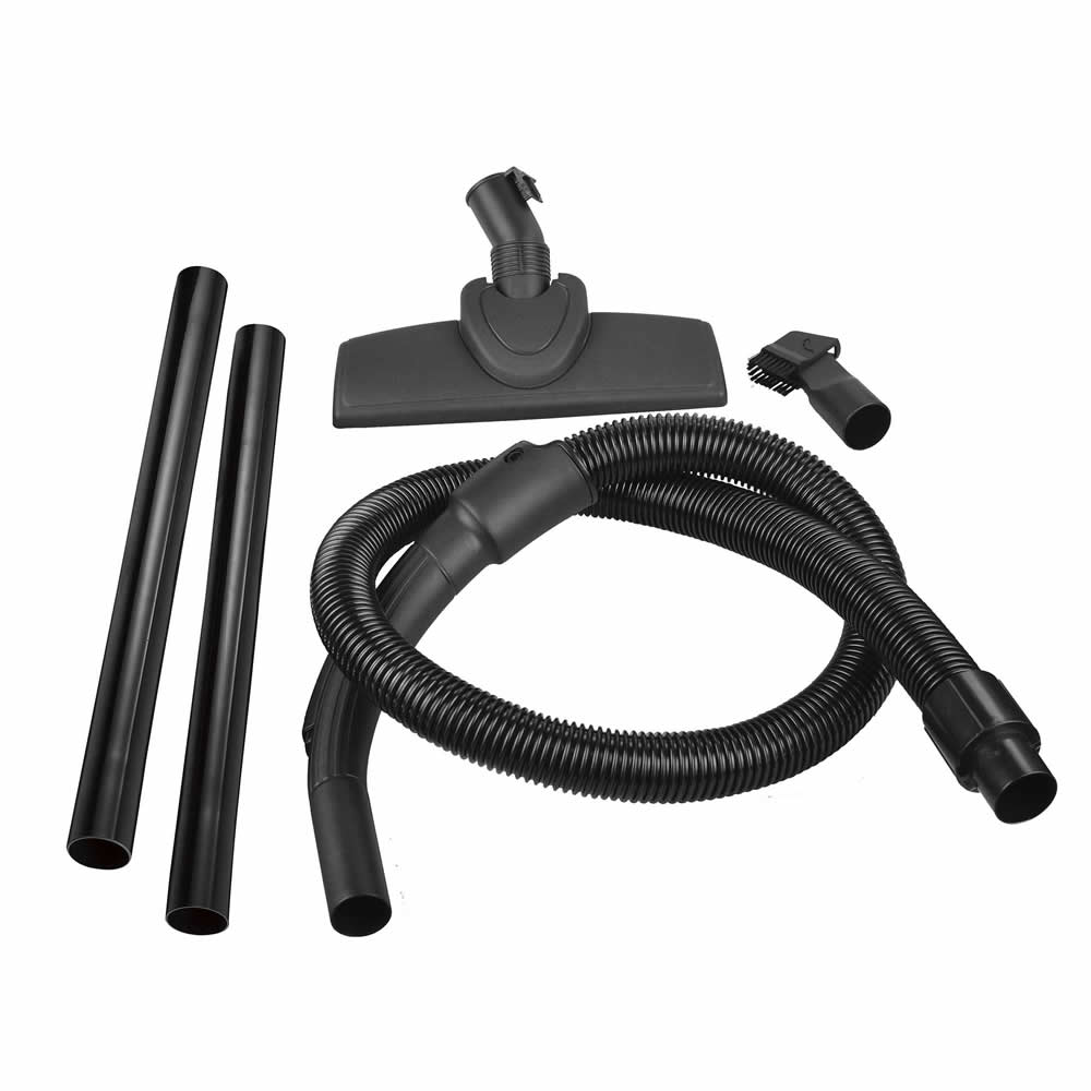 • Accesorios: Manguera de plástico flexible, Tubos de plástico (2 x 40 cm), cepillo para limpieza de suelos y alfombras, boquilla para coches y sofás 2 en 1