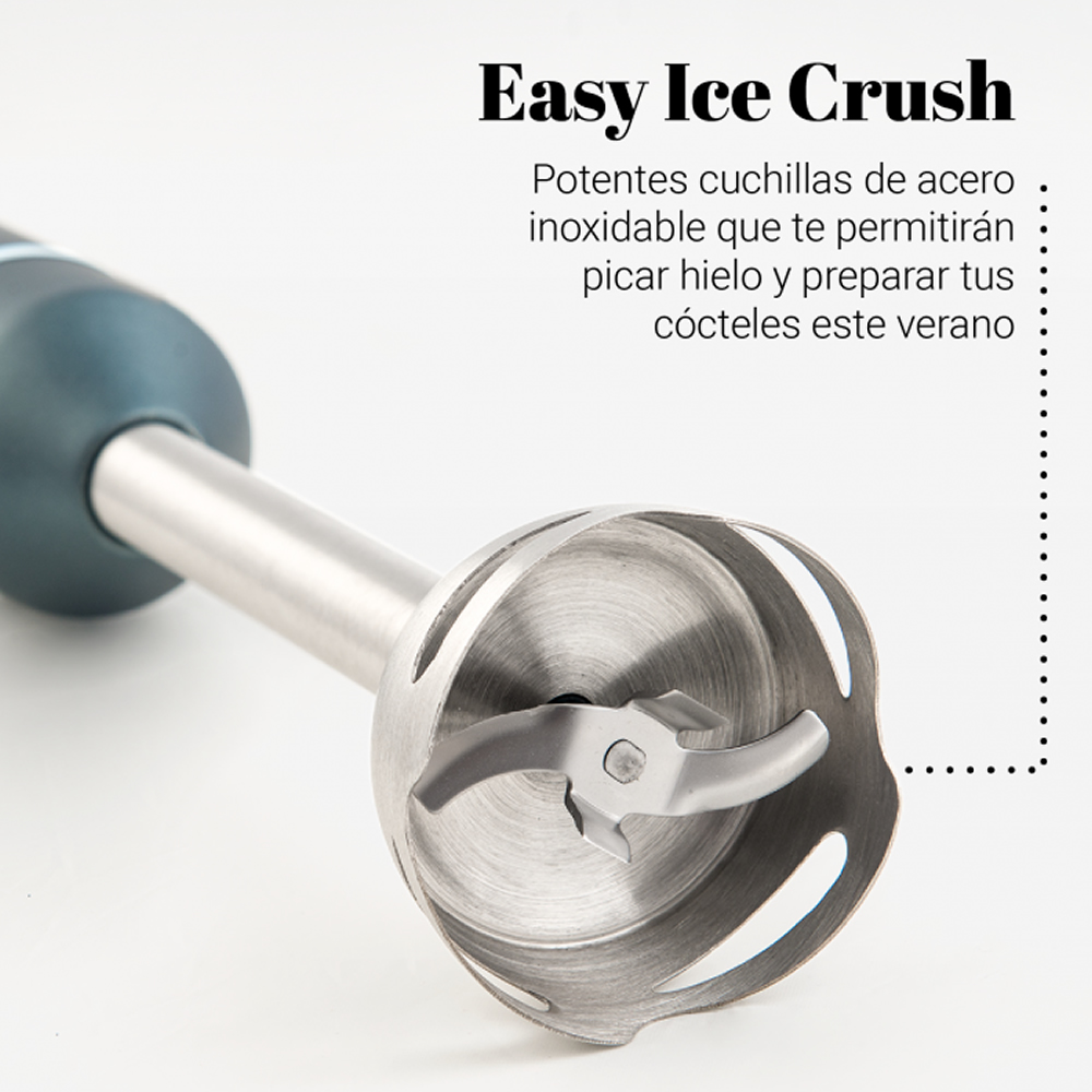 Con su mango ergonómico antideslizante podrás regular la velocidad de tu batidora al máximo sin que se te escape de las manos y sus cuchillas de acero inoxidable te permitirán picar hielo. Elige entre nuestras batidoras la que mejor cumpla tus necesidades y disfruta de la cocina.