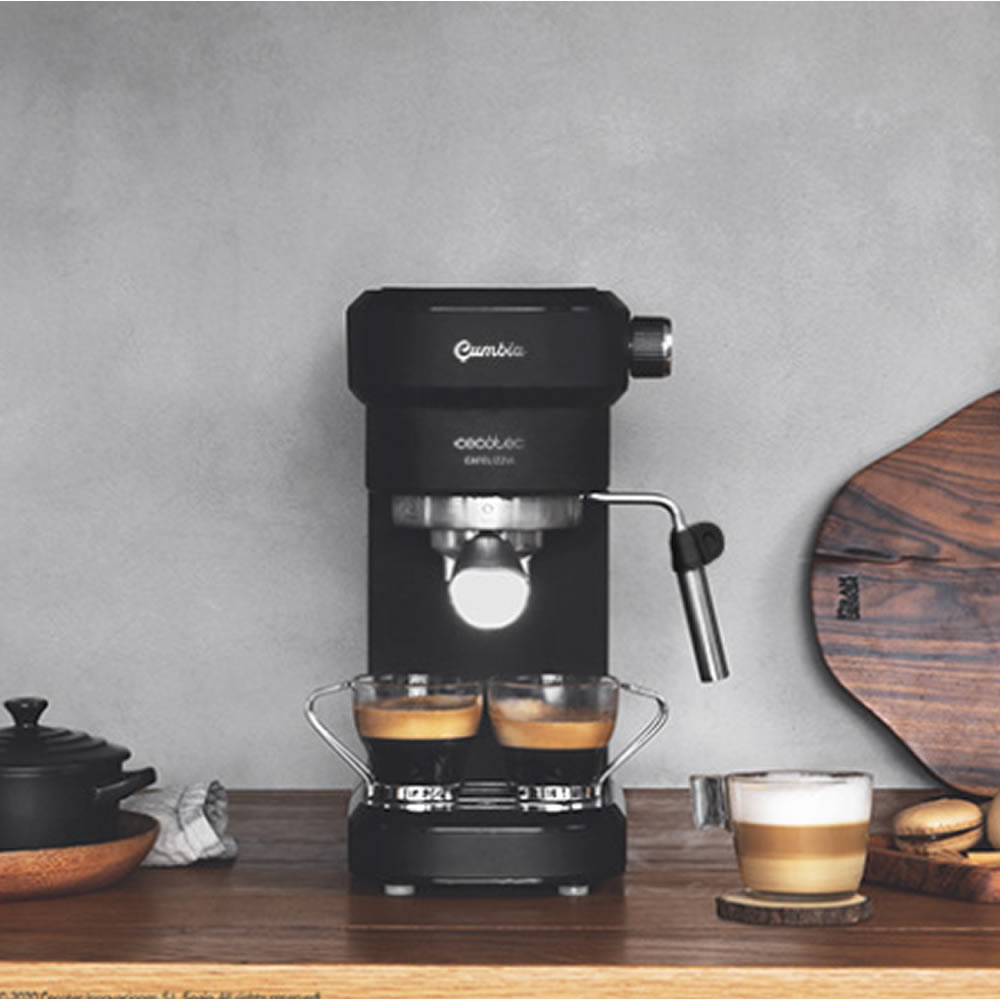 Cafetera espresso con diseño elegante y compacto para los amantes del buen café. Permite hacer todo tipo de cafés con una potencia máxima de 1350 W y también emite agua caliente para las infusiones.