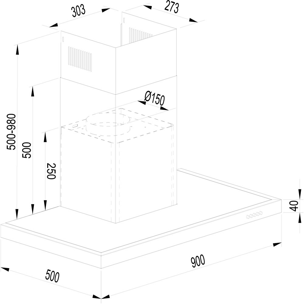 | Tubos decorativos | 500+500 mm, según el color de campana (Inox, Negro o Blanco) |