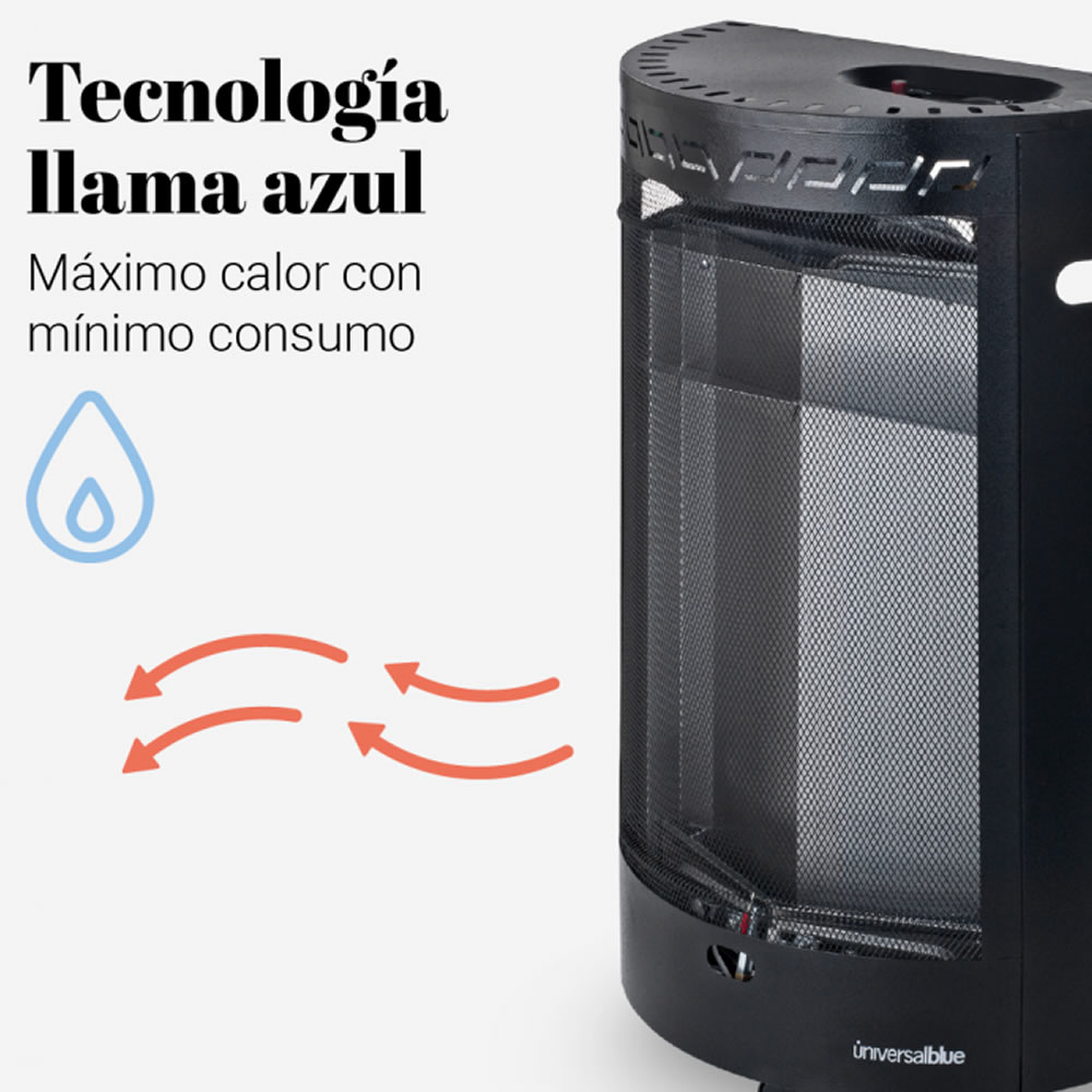Nuestra estufa de gas de llama azul funciona por convección térmica, quiere decir que calienta de forma gradual la habitación, aportando la máxima calidez gracias a sus 4200W de potencia y a sus 2 potencias de funcionamiento, elige entre 1600 y 4200W y no pases frío este invierno.