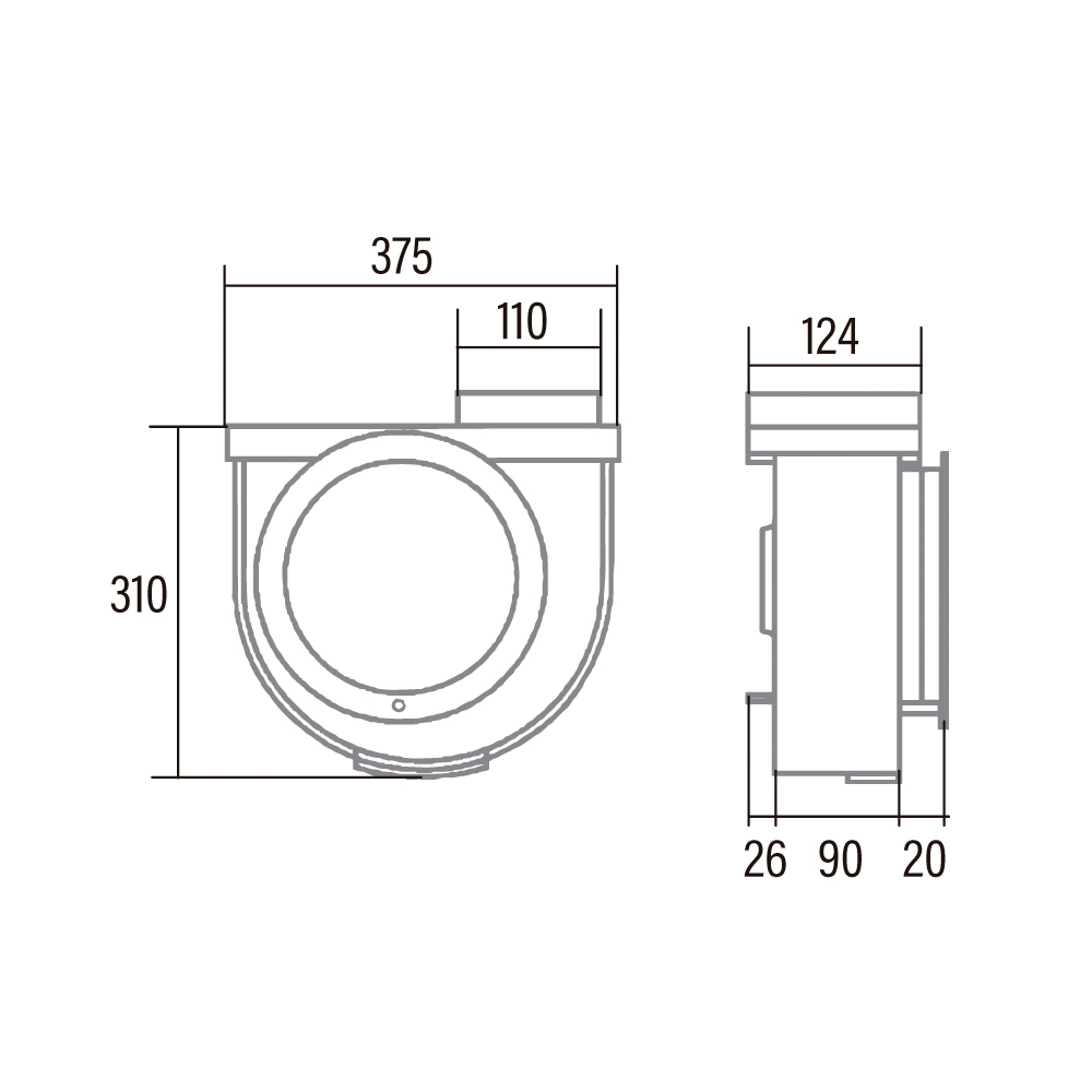 Extractor centrífugo de cocina modelo GS 600 con salida lateral de humos.