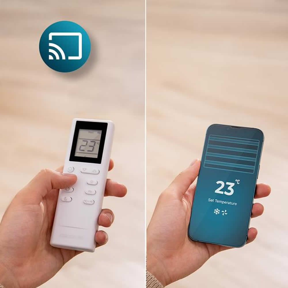 Crea el ambiente que deseas con un solo toque desde tu móvil o desde su mando a distancia y conoce en todo momento la configuración seleccionada a través de su pantalla LED.