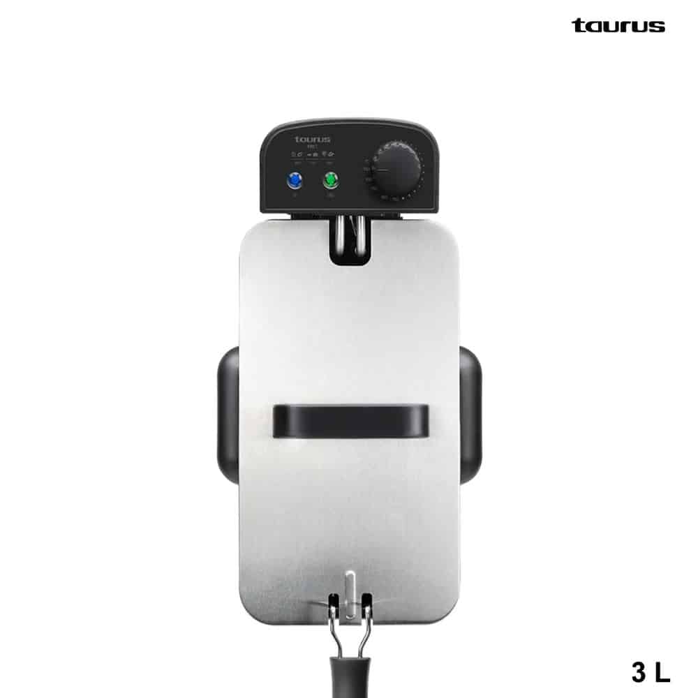 Frituras crujientes con la freidora Fry3 de Taurus. Cocina para toda la familia en sus 3 litros de capacidad que te permiten freír hasta 1kg de patatas de una sola vez. Y gracias a sus 2000W de potencia los resultados son con el mínimo tiempo. Con temperatura regulable y partes totalmente desmontables aptas para lavavajillas.