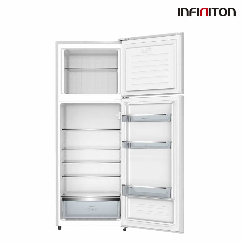 Gracias a sus balcones en puerta, podrás almacenar en los laterales todo tipo de refrescos o botellas. Con sus balcones de gran altura situados en la puerta, no tendrás problema para guardar cualquier tamaño de botella, de envase, o incluso productos en perpendicular. En Infiniton, todo está pensado para tu confort y usabilidad desde el diseño hasta el interior de tu frigorífico, disfruta de todos los compartimentos de los frigoríficos Infiniton.