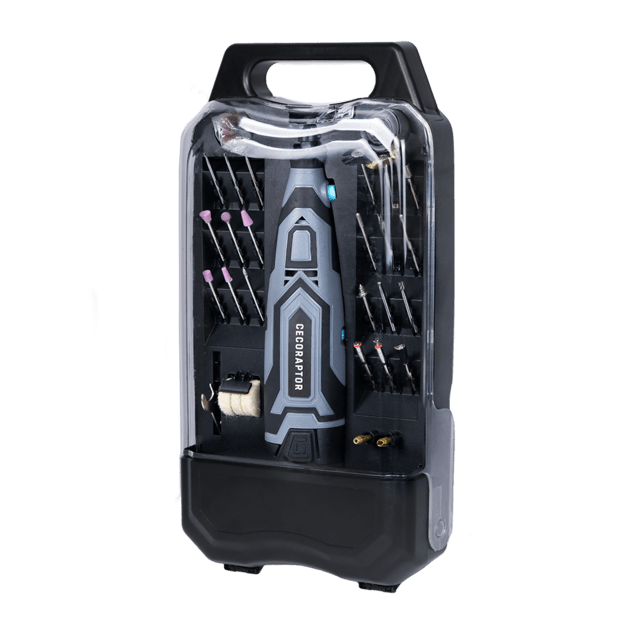 Cuenta con un kit de 60 accesorios con el que podrás cortar, lijar, pulir, grabar, fresar, desoxidar e incluso taladrar. Realiza trabajos de bricolaje en casa o en el taller, manualidades, restauración de muebles, joyería, bisutería y todo lo que puedas imaginar.