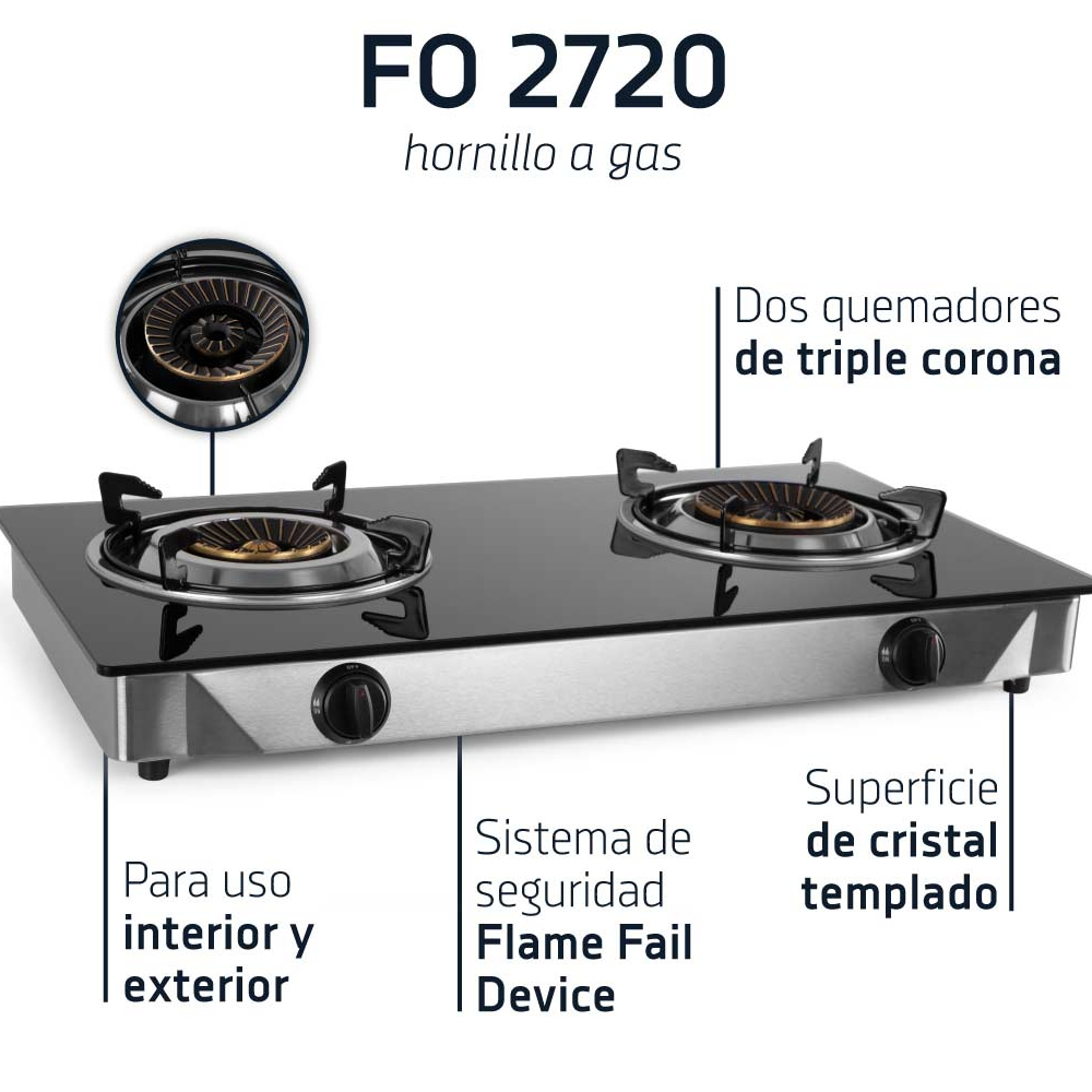 El FO 2720 cuenta con dos quemadores de triple corona, el mayor de 4,3 kW y el menor de 3,4 kW. Ambos cuentan con encendido piezoeléctrico.