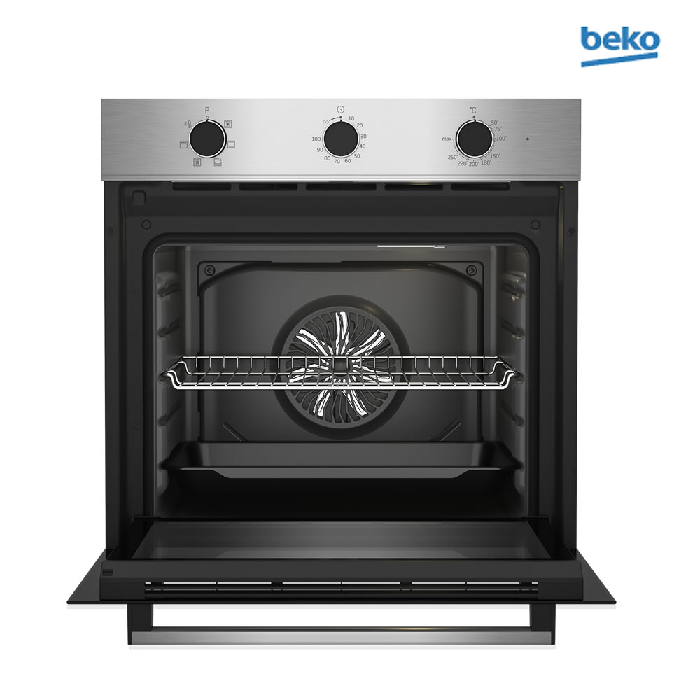 El horno Beko multifunción en acabado inox combina diseño moderno y funcionalidad para elevar tu experiencia culinaria en casa. Equipado con tres mandos, ofrece un control sencillo e intuitivo para preparar todo tipo de recetas. En MI FACTORY apostamos por soluciones prácticas y eficientes, y este horno es perfecto para quienes valoran la versatilidad y la precisión en la cocina.