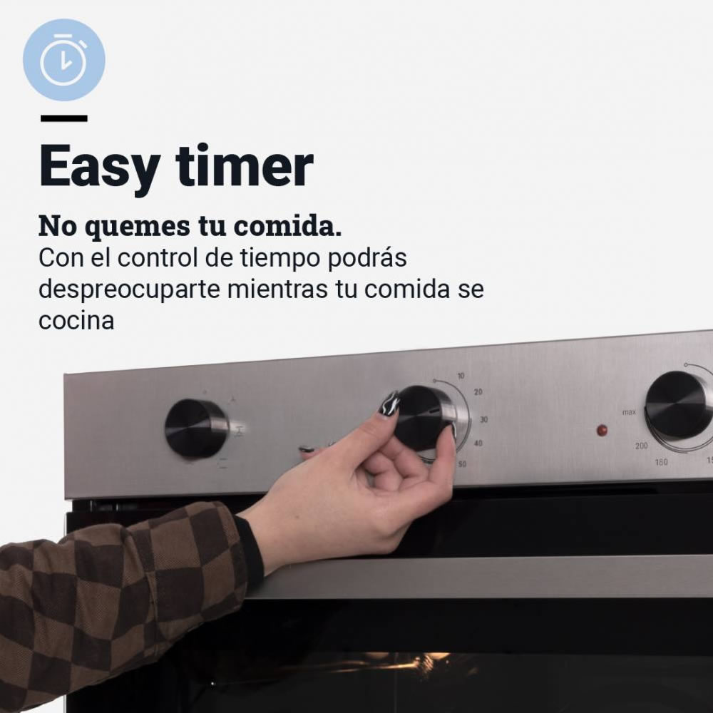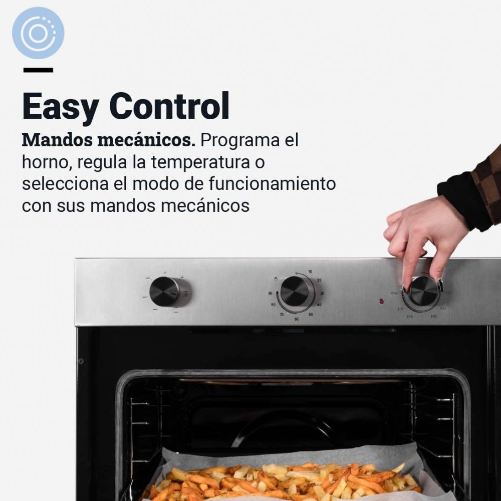 Este horno destaca por su sistema multifunción, que facilita la preparación de una amplia variedad de platos, optimizando la distribución del calor y asegurando resultados homogéneos. Su estructura robusta en acero inoxidable lo convierte en una opción resistente y de fácil mantenimiento.