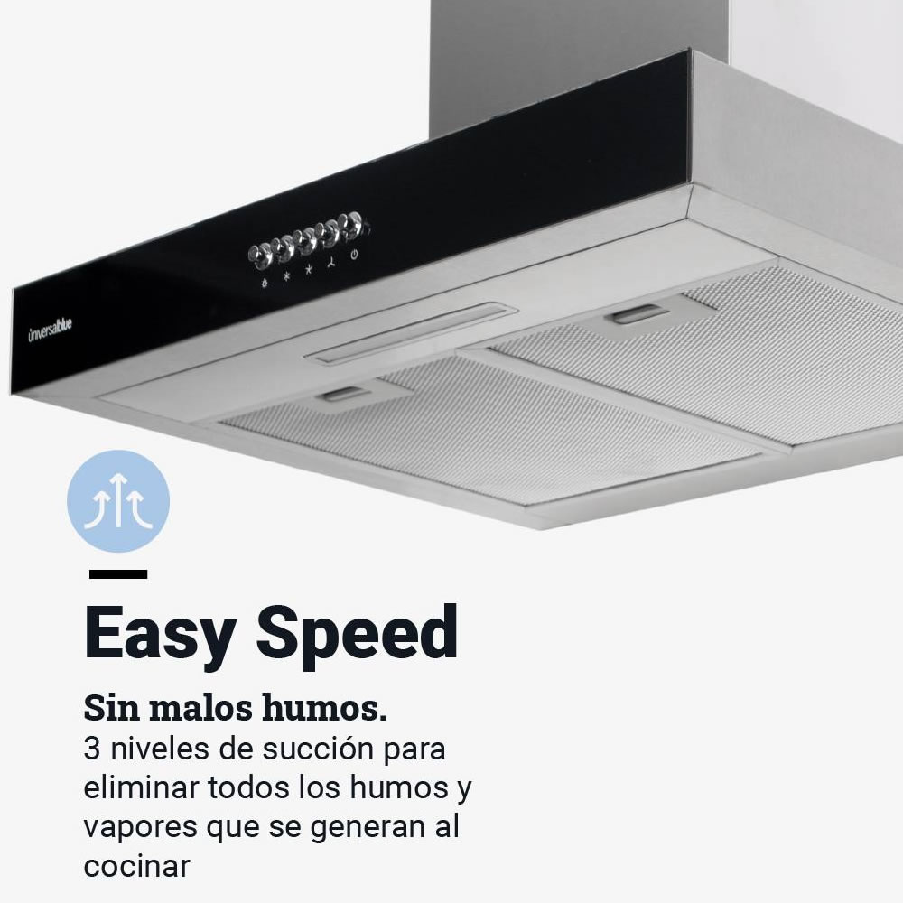 Selecciona entre sus 3 velocidades la que mejor se adapte a cada momento. La tranquilidad invadirá tu casa, gracias a su nivel de ruido de 66 dB. Por último, para facilitar tu día a día y que disfrutes de tu tiempo, sus filtros de aluminio son extraíbles y lavables en el lavavajillas (y sí, disponemos de repuestos para cuando los necesites).