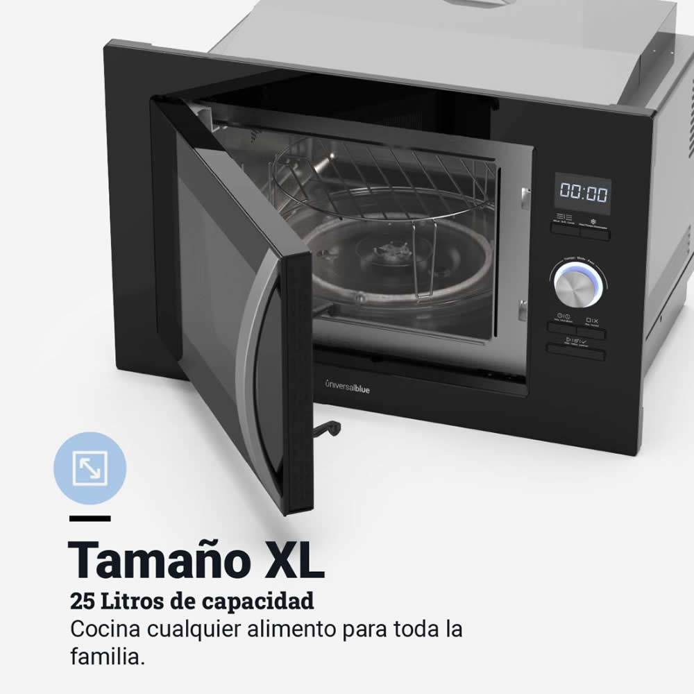 Microondas con capacidad de 25 L y 5 modos de potencia. Equipado con 900 W de potencia, temporizador de hasta 95 minutos y control electrónico. Incluye grill.