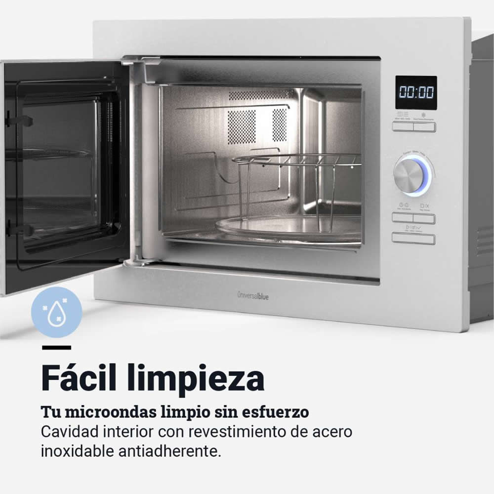 Diseñado para transformar tu cocina en un oasis culinario, este electrodoméstico ofrece una potencia excepcional depara cocinar de forma rápida y eficiente. Equipado con 900 W y 1000 W de potencia en su función grill. Elige entre sus 5 modos de potencia y selecciona el tiempo de cocción cómodamente con su control digital, incluye temporizador hasta 95 minutos. Su función descongelar, te permimtirá descongelar desde carnes y pescados hasta platos preparados sin necesidad de sacarlos la noche anterior. Y su señal sonora te indicará que tus platos están listos para tomar. Revisa el estado de tus recetas gracias a su luz interior.