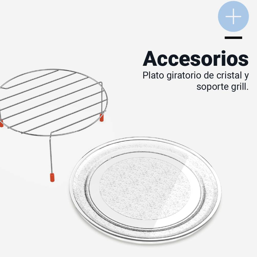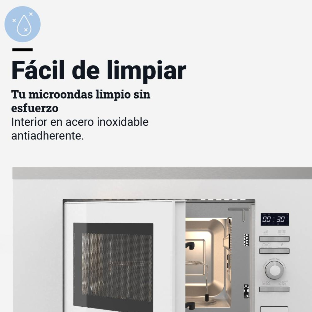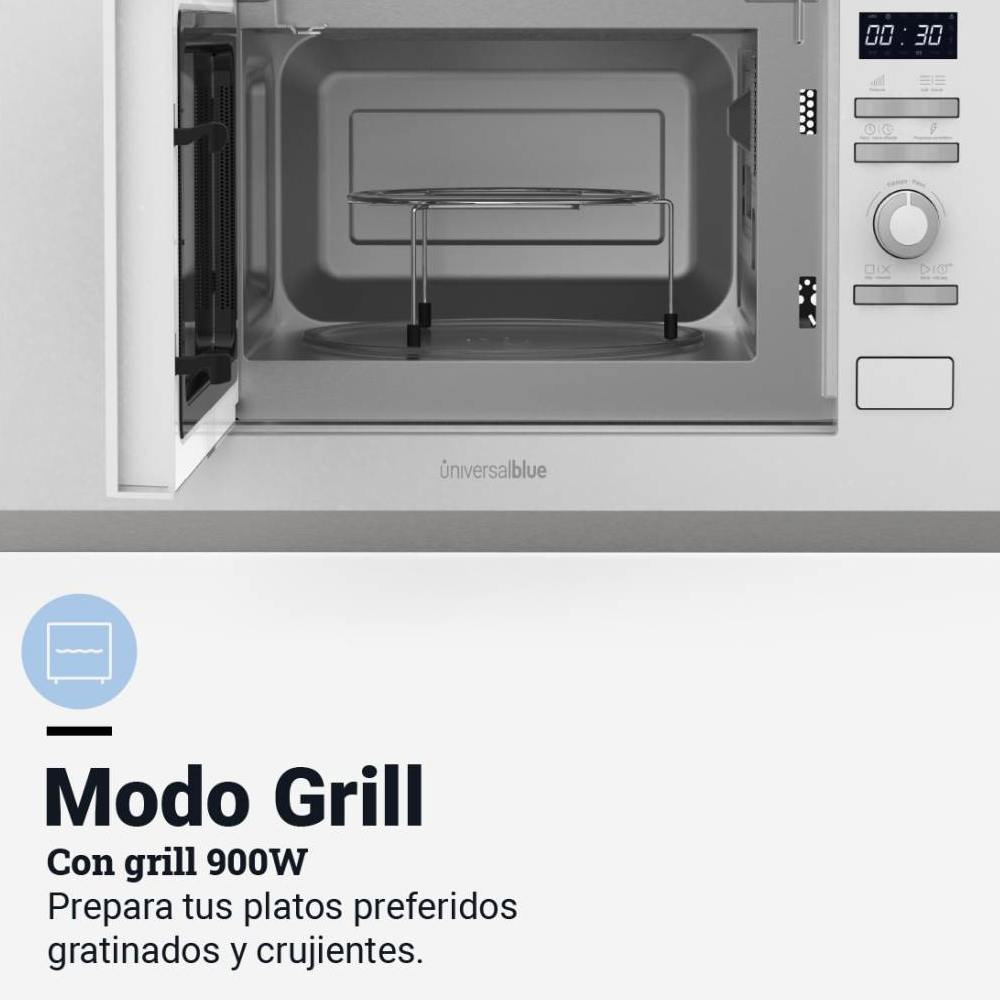 Su instalación integrada te permitirá aportar gusto y distinción a tu cocina. Incluye plato de cristal de 24,5 cm de diámetro y una rejilla de acero para su función grill. Sin ninguna duda, será como una mano extra en la cocina, ¡todo listo en tan solo unos minutos!