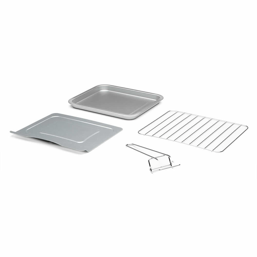 El indicador luminoso de funcionamiento te permite saber en todo momento si el horno está encendido, añadiendo una capa adicional de seguridad. Además, el horno viene equipado con una serie de accesorios que incluyen una bandeja, una rejilla, una bandeja recogemigas y un gancho para bandeja. Estos accesorios hacen que el uso del horno sea más cómodo y versátil, permitiéndote adaptarlo a diferentes necesidades de cocción.