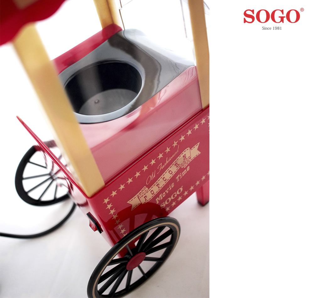 El carrito de palomitas SOGO utiliza un sistema eficiente para calentar y hacer explotar los granos de maíz, permitiendo obtener palomitas crujientes en pocos minutos. Su diseño compacto facilita el uso y la limpieza, adaptándose a diferentes espacios del hogar.