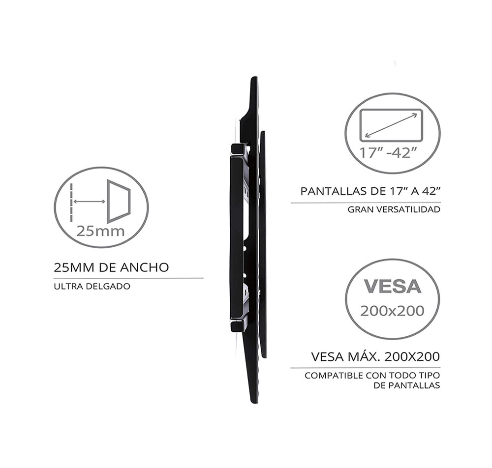 TM Electron Soporte fijo 17» a 42» (200×200) 20kg, Negro