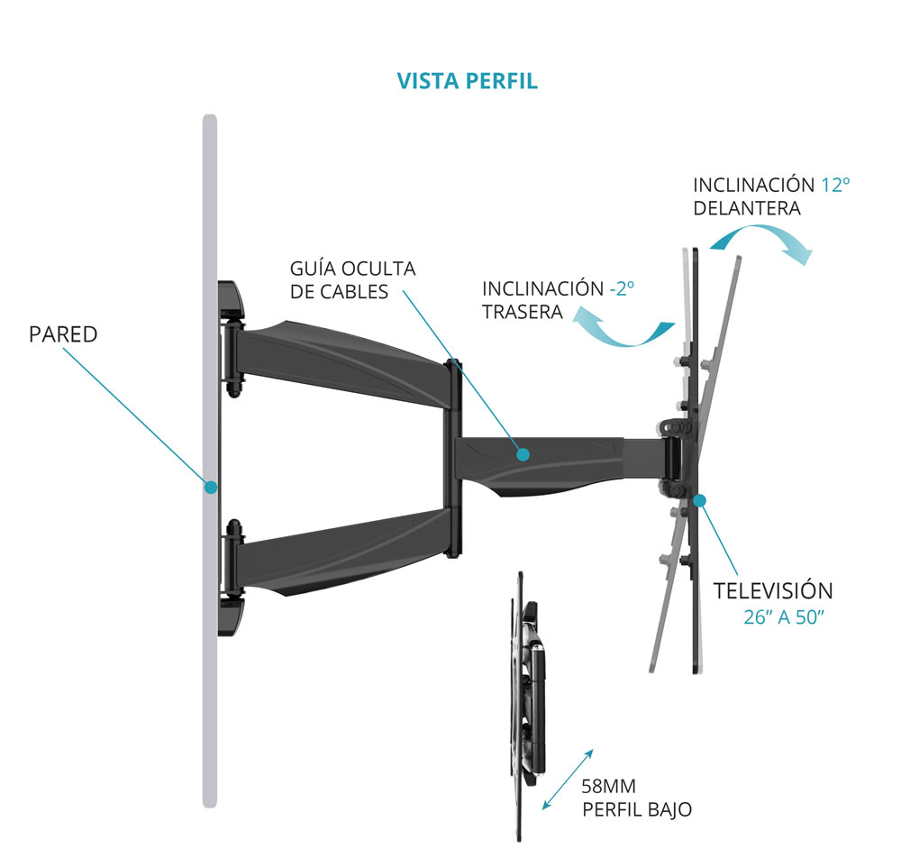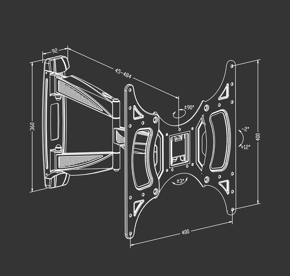 Un soporte de pared donde todos los componentes están hechos de materiales de alta calidad y cumplen con las normas de seguridad. Se aprovecha todo el espacio y puede satisfacer todos los ángulos y condiciones de visión, dando un aspecto mas atractivo y moderno a tu casa.