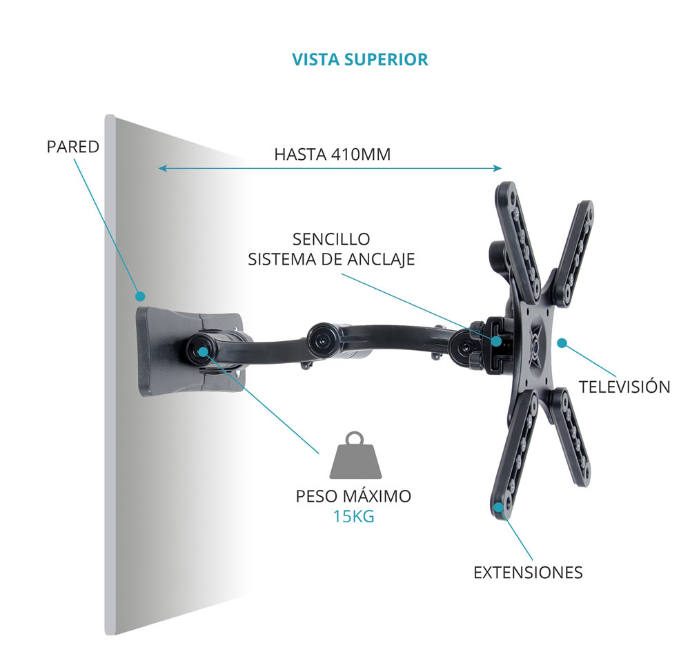 Aprovecha todo el espacio y coloca de manera rápida y práctica tu tv en la pared. Puede gira 180º para satisfacer todos los ángulos y condiciones de visión, dando un aspecto mas atractivo y moderno a tu casa.