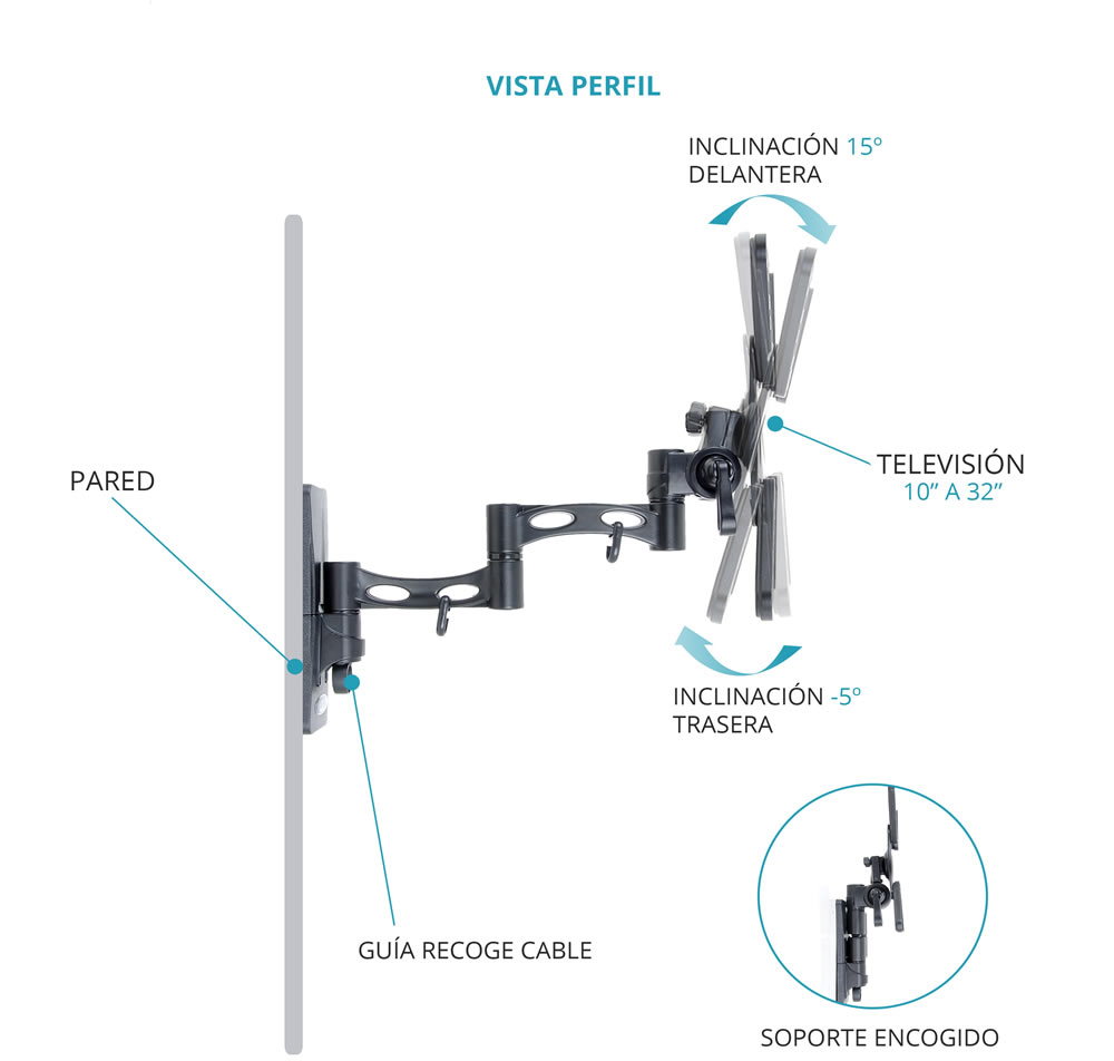 • Apropiado para colgar pantallas de monitores o televisores de 10″ a 32″.