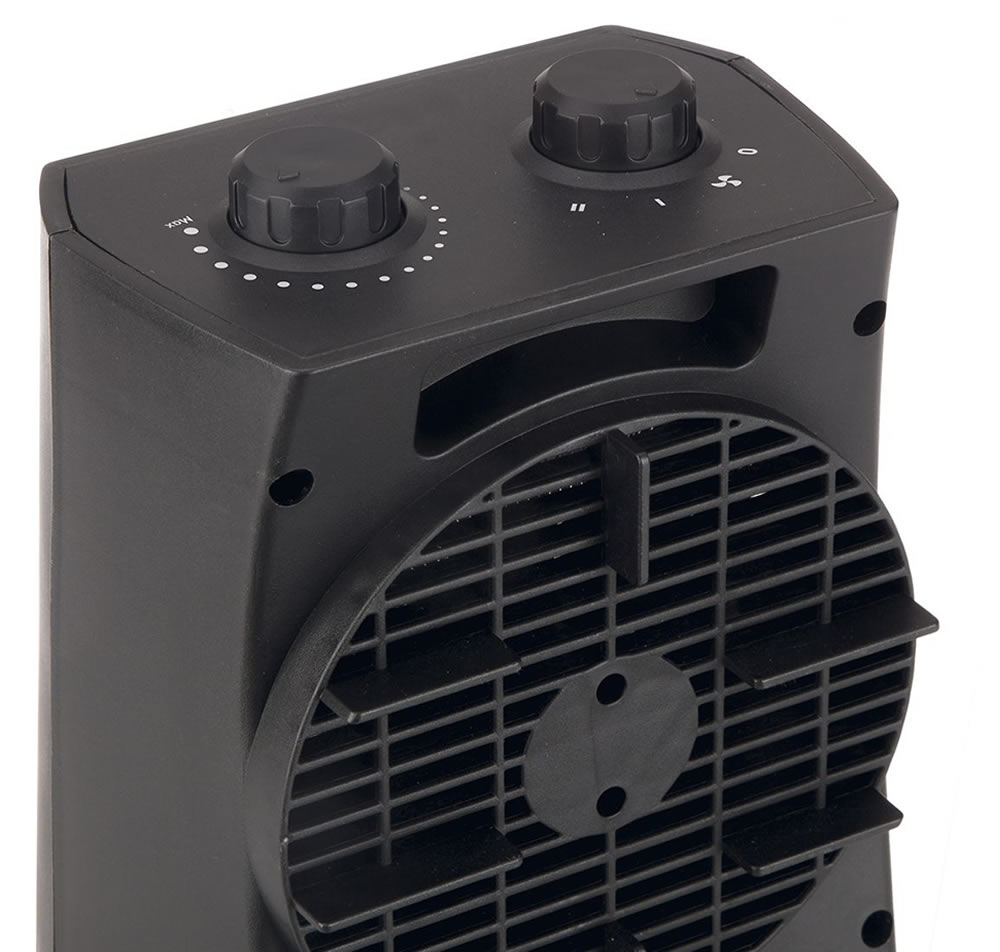 • Selector rotativo 3 posiciones: ventilación – calor medio – calor máximo.