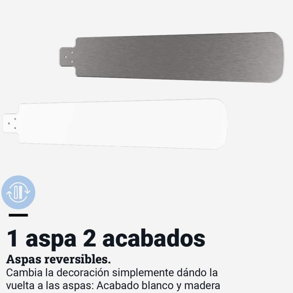Ventilador de techo con aspas reversibles y cuerpo en inox. Sus 70 W de potencia se encargarán de refrescar tus estancias de hasta 30 m². Equipado con temporizador, 3 velocidades y control remoto.
